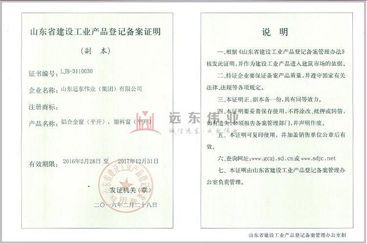 門窗備案證明 2023-09-13 09:18:46 上一條:全國(guó)工業(yè)產(chǎn)品生產(chǎn)許可證 下一條: 建筑工程施工總承包叁級(jí) 市政公用工程施工總承包叁級(jí) 建筑機(jī)電安裝工程專業(yè)承包叁級(jí) 古建筑工程專業(yè)承包叁級(jí) 環(huán)保工程專業(yè)承包叁級(jí) 相關(guān)資訊 夯實(shí)基礎(chǔ)·砥礪奮進(jìn) | 重慶龍... 正在施工的和新承接的項(xiàng)目情... 近年完成的類似項(xiàng)目情況表... 關(guān)于加強(qiáng)項(xiàng)目部農(nóng)民工工資支... 熱門推薦 黃海明珠中心 濟(jì)寧運(yùn)河城 開發(fā)區(qū)萬(wàn)達(dá)廣場(chǎng) 中國(guó)重汽濟(jì)寧商用車有限公司