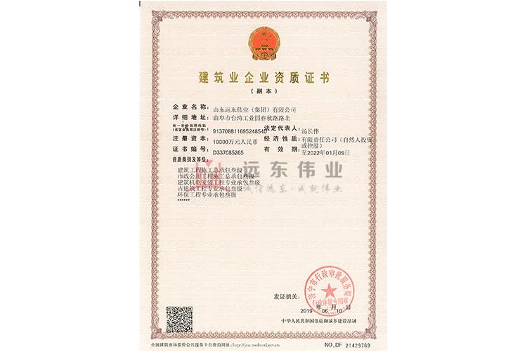 建筑工程施工總承包叁級(jí) 市政公用工程施工總承包叁級(jí) 建筑機(jī)電安裝工程專業(yè)承包叁級(jí) 古建筑工程專業(yè)承包叁級(jí) 環(huán)保工程專業(yè)承包叁級(jí) 2023-09-13 09:19:23 上一條:門窗備案證明 下一條: 建筑門窗行業(yè)資格證書 相關(guān)資訊 夯實(shí)基礎(chǔ)·砥礪奮進(jìn) | 重慶龍... 正在施工的和新承接的項(xiàng)目情... 近年完成的類似項(xiàng)目情況表... 關(guān)于加強(qiáng)項(xiàng)目部農(nóng)民工工資支... 熱門推薦 黃海明珠中心 濟(jì)寧運(yùn)河城 開發(fā)區(qū)萬達(dá)廣場 中國重汽濟(jì)寧商用車有限公司