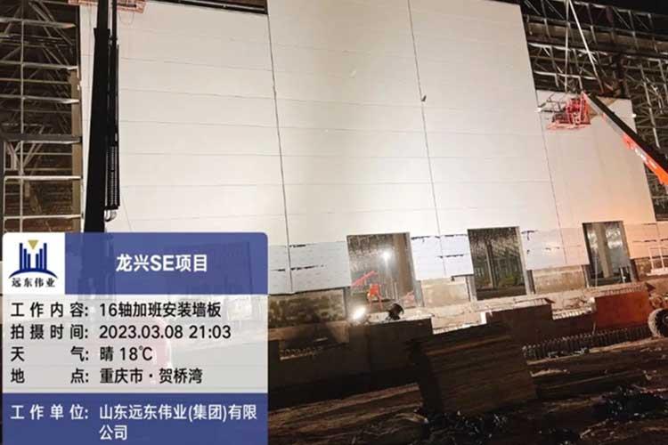 科學施工鑄精品,管理創(chuàng)優(yōu)良。為保障工程能夠按時、按質(zhì)交付,山東遠東偉業(yè)集團重慶龍興SE項目部全員履職,上下團結(jié)一心,憑借堅強的毅力、過硬的技術能力,攻克一個又一個施工過程中出現(xiàn)的難點,順利進行了主體墻面和屋面的結(jié)構(gòu)施工,取得了工程建設的階段性勝利。