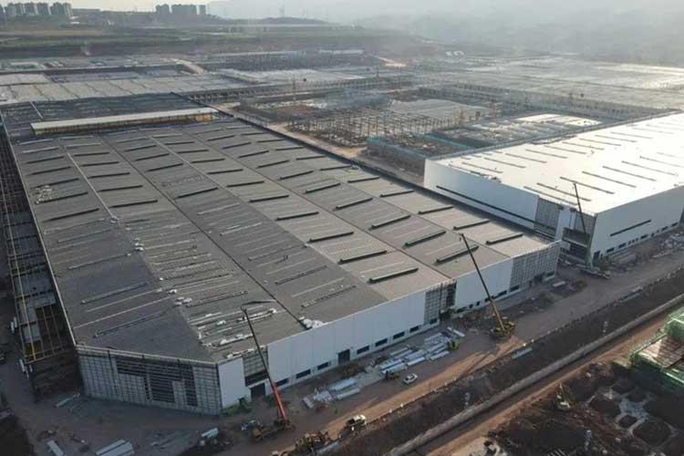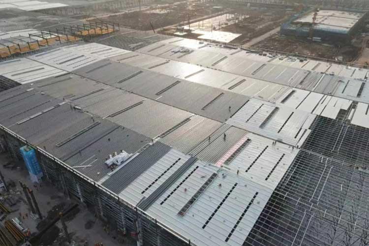 山東遠東偉業(yè)集團重慶龍興SE項目部所負責的總裝一車間屋蓋總面積8.54萬平方米,橫向?qū)挾葹?68米,縱向長度為512米。