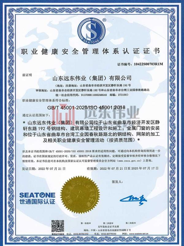 職業(yè)健康安全管理體系認證證書 2023-09-13 09:25:44 上一條:重合同守信用企業(yè) 下一條: 環(huán)境管理體系認證證書 相關資訊 夯實基礎·砥礪奮進 | 重慶龍... 正在施工的和新承接的項目情... 近年完成的類似項目情況表... 關于加強項目部農(nóng)民工工資支... 熱門推薦 黃海明珠中心 濟寧運河城 開發(fā)區(qū)萬達廣場 中國重汽濟寧商用車有限公司